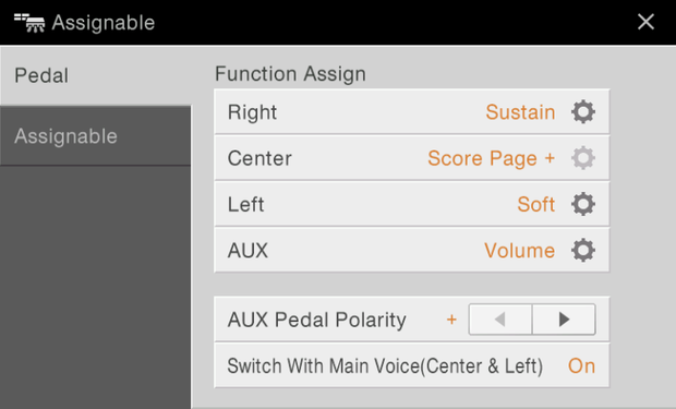 The score function in the Clavinova is a great way to have a “reminder score” as you play in a concert without sheet music. When a score is displayed in the CVP, you can swipe your finger to the right or left to turn pages. As a bonus, rather than using your finger to turn pages, you can assign the CENTER pedal to advance pages, making page turns more seamless — like using a Bluetooth page-turning pedal